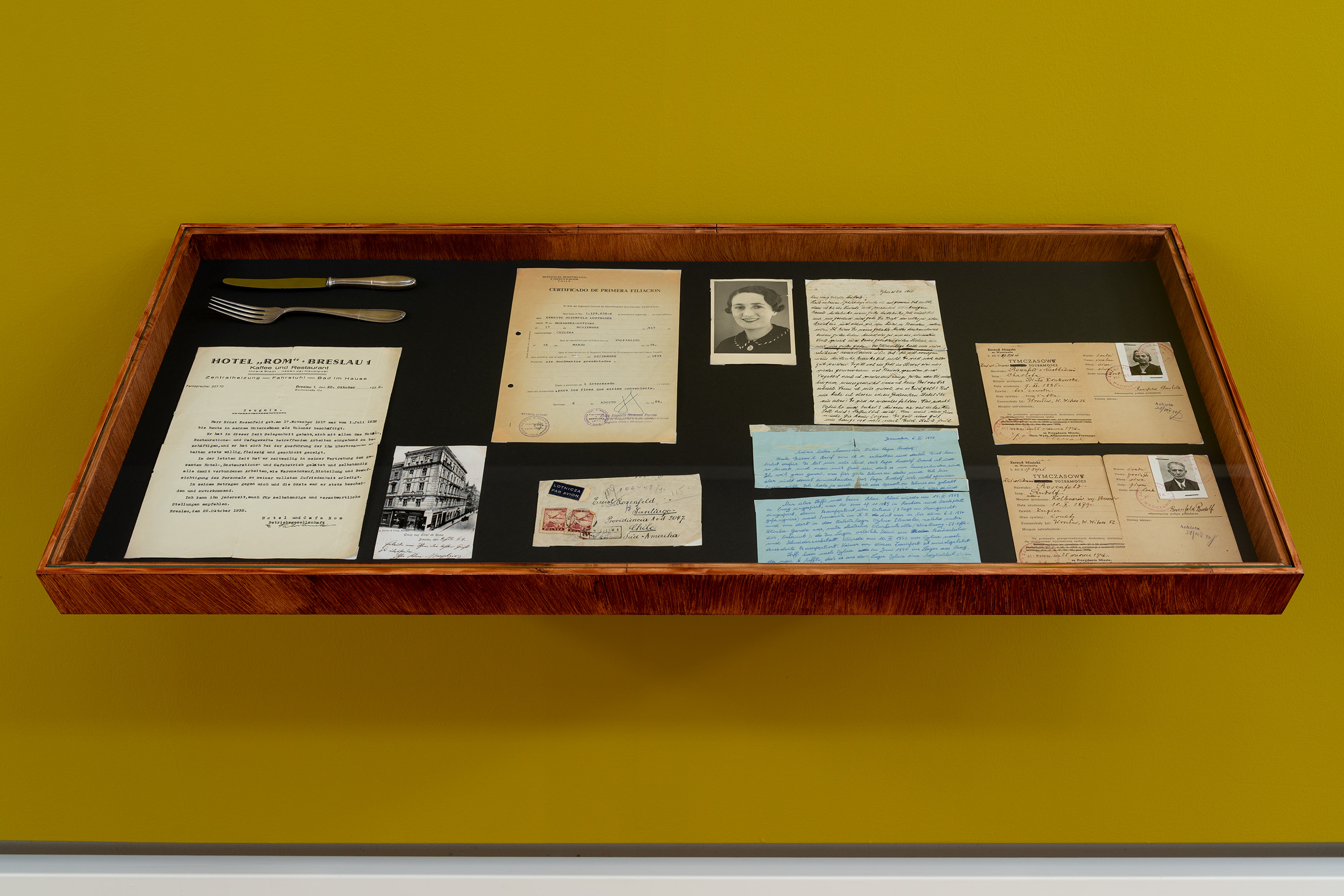 Ihre wohl berühmteste Arbeit wurde 2007 auf der Documenta 11 in Kassel ausgestellt, doch noch vor der Eröffnung von der Stadtreinigung zerstört. Eben diese Werkserie “Una Milla de cruces sobre el pavimento” (dt. “Eine Meile Kreuze auf dem Asphalt”) wurde erstmals 1979 in Santiago realisiert. Das Video mit selbigen Titel zeigt Rosenfeld auf einer Straße in Jeans und Sandalen, wie sie langsam weiße Stoffstreifen auf dem Asphalt ausrollt und die weißen Fahrbahnmarkierungen, die die Spuren trennen, langsam in Kreuze, Pluszeichen oder den Buchstaben X verwandelt. Obwohl Rosenfeld sich mit dieser Performance in Gefahr begab und sie speziell für diese Arbeit hätte bestraft werden können, die sich gegen die Unterdrückung durch den chilenischen Diktator Pinochet richtete, war ihre Handlung bewusst ephemer: Ein treffendes Bild dafür, wie es ist, in hoffnungslosen Zeiten Hoffnung zu fassen. Man handelt, beobachtet, wie das Werk vergeht, und beginnt von Neuem – es ist das fortwährende Tun selbst, das Hoffnung trägt. Die von Paula Kommoss kuratierte Ausstellung lenkt den Blick erstmals auf eine Fotografie, die noch vor der Performance die Linie zeigt und eröffnet damit eine neue Perspektive auf den Beginn dieser ikonischen Werkserie.