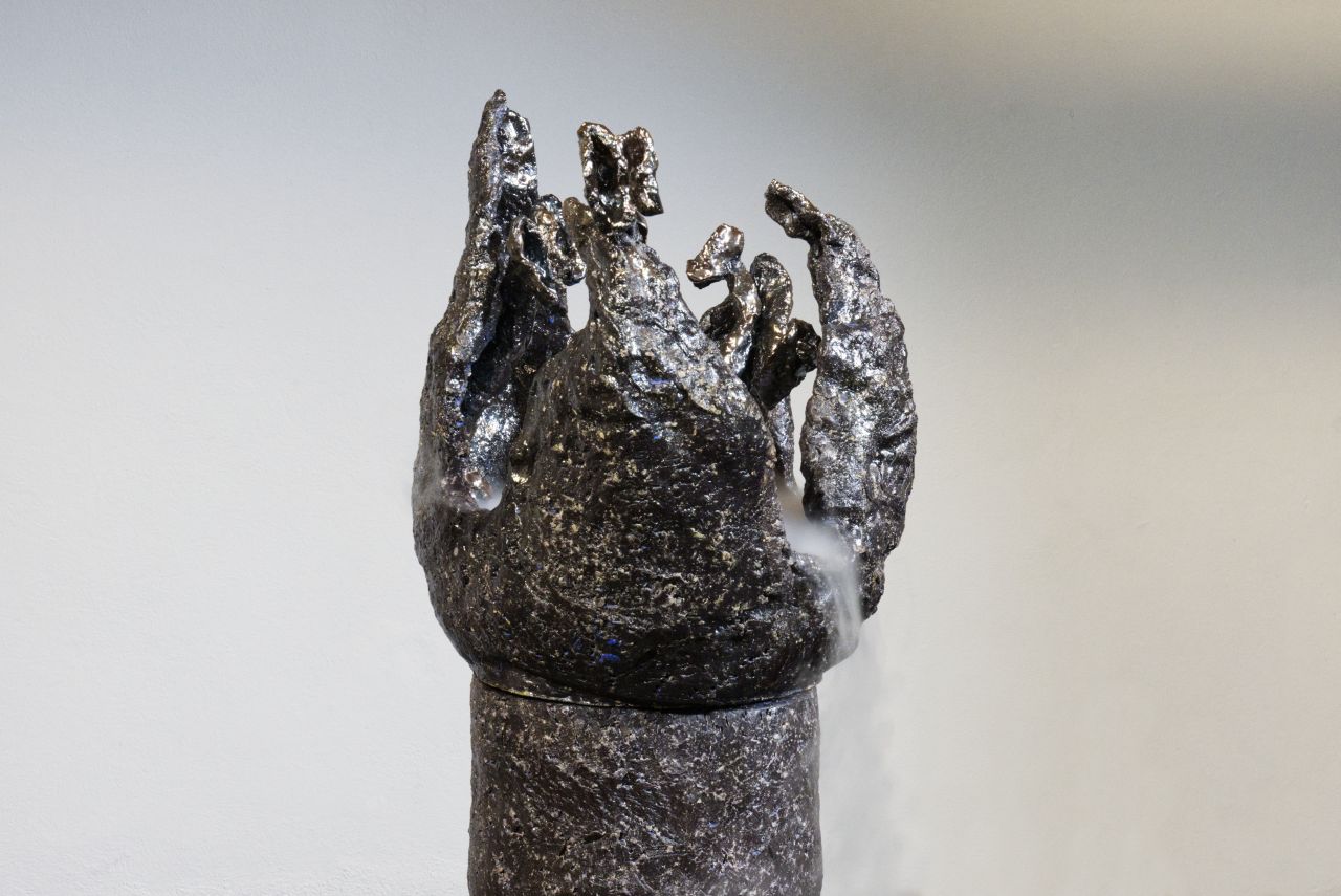 Meine künstlerische Praxis verstehe ich als fluide, kritische Reflexion. Ich verwebe das bildhauerische Material mit Erzählungen unterschiedlicher Quellen, wobei ich tradierte Sinnbezüge verändere. Aktuell sind weiblich gelesene mythologische Figuren wiederholt Ausgangsimpuls meiner Recherchen. Das imaginative Potenzial von Sirenen und Medusen interessiert mich genauso wie die historisch gewachsenen Ambivalenzen diesen Figuren gegenüber – zwischen Idealisierung und Dämonisierung. Ich arbeite mit skulpturalen Fragmenten, mit Wasser und bewegter Luft, mit Fratzen und Gelächter. Aus keramischen Flossen und Hühnerfüssen tönt Gesang.